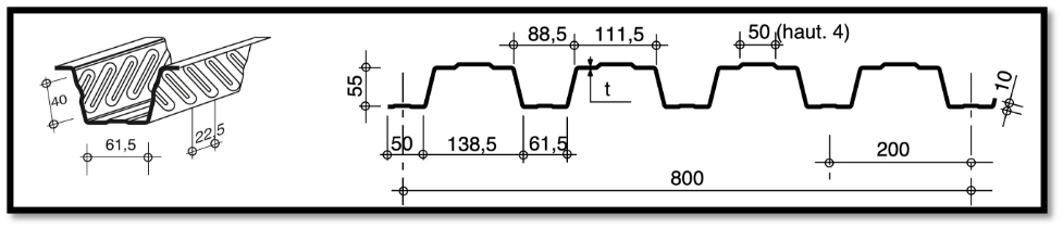 Plancher Collaborant de 55mm Lg 3000mm - Largeur 800mm Utile