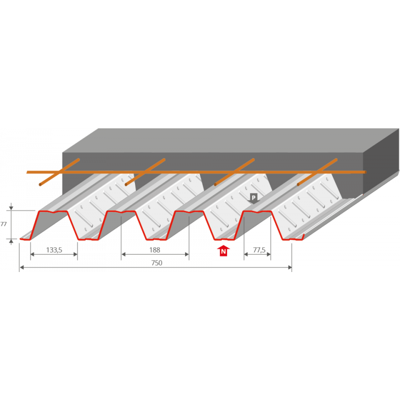Accueil / Plancher collaborant en France / Plancher Collaborant - PCB 80 / Plancher Collaborant de 80mm Lg 7000mm - Largeur 750mm